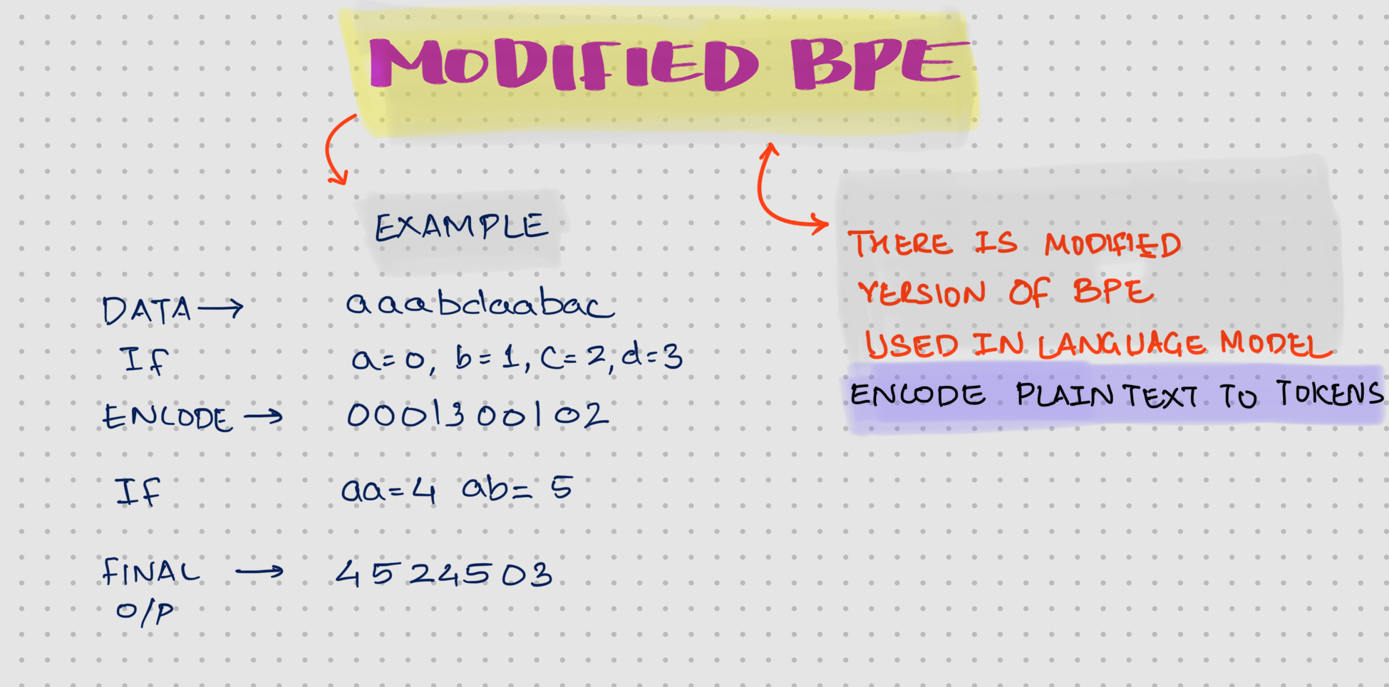 In LLM, we use something called Modified Byte Pair Encoding. Used for encoding plain text to tokens