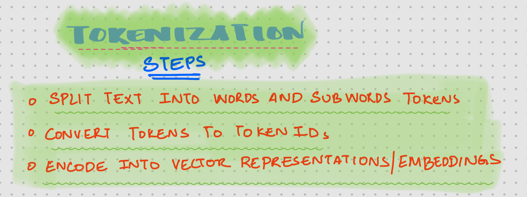 Input to the transformers are numbers not words, so we need to change the raw text to tokens (usually words, subwords or even characters) and convert it to token ids. This is called Tokenization.
