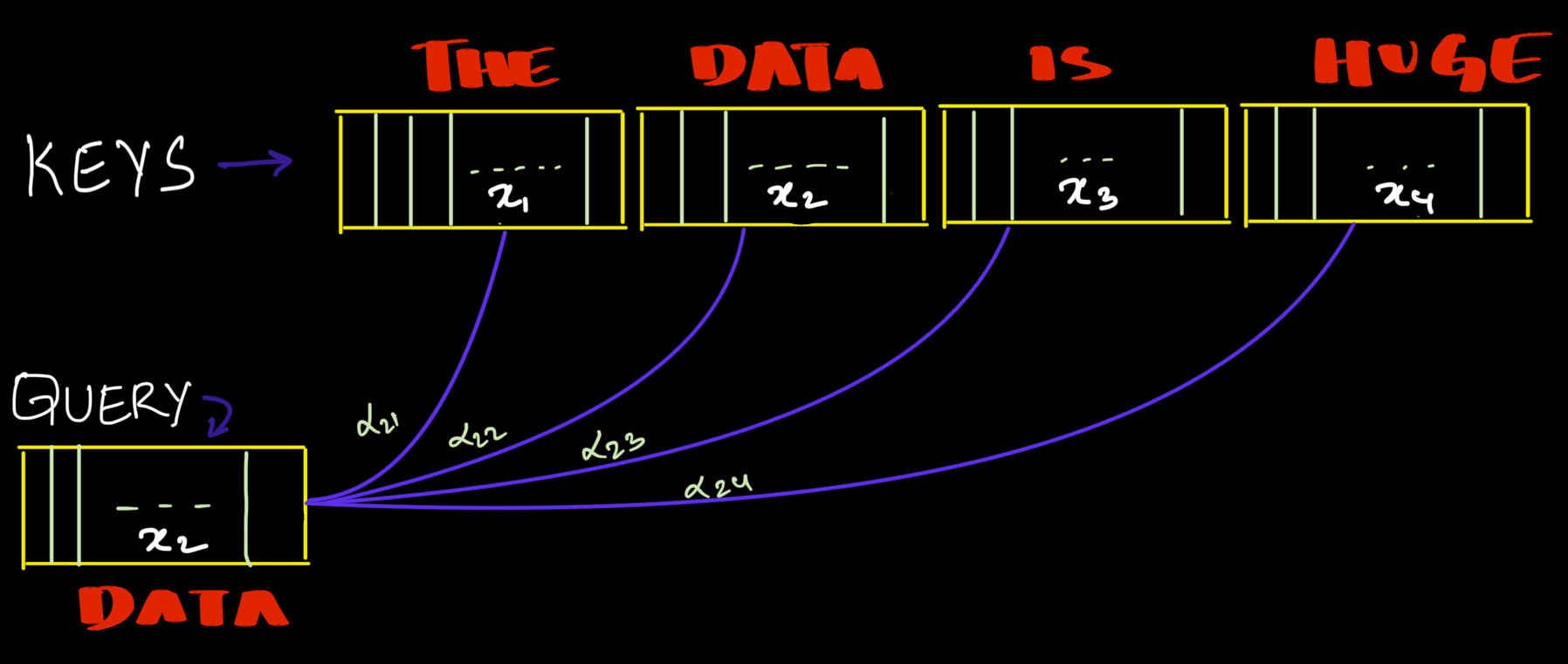 Where: \(v_1 ,v_1, v_1, v_1\) are Value Matrix